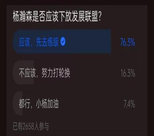 针对这一话题,超千人票选给出答案,结果超过7成的球迷认为杨瀚森应当去G联赛练级。