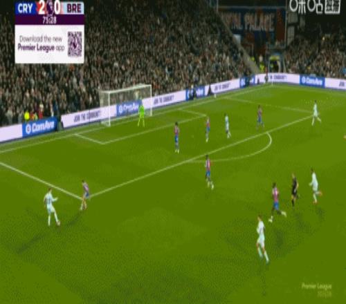 第30分钟,莱尔马助攻,马特塔头球破门,水晶宫1-0布伦特福德