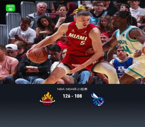 第四节热火哈克斯拿下8分,黄蜂克努佩尔拿下9分,最终热火126-108战胜黄蜂