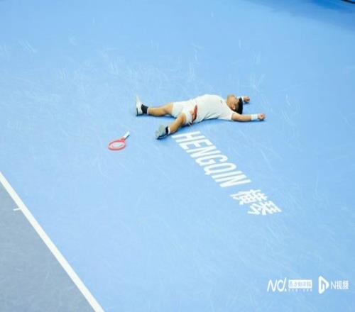取得胜利后,吴易昺激动倒地。