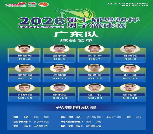 广东队以此前 第八届粤港杯阵容为班底,由 刘炜浩指导挂帅, 增补了詹宇森、谢威和惠州本土球员温钊三名球员。