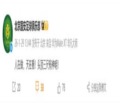 北京国安发文“人在做,天在看!头顶三尺有神明!”后,删文