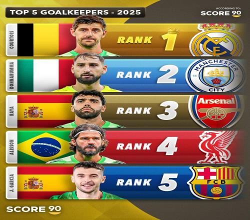 Score90评2025年度前五门将:库尔图瓦居首,多纳鲁马第二